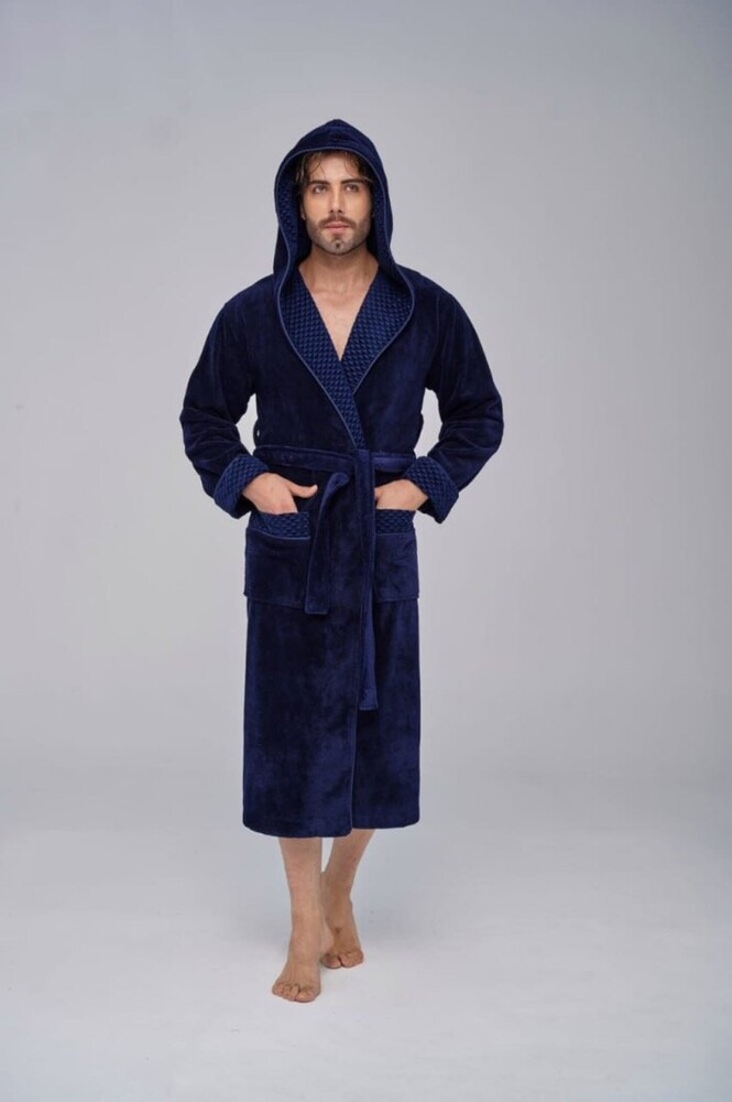 Мужской махровый халат с капюшоном длинный Nusa 2807