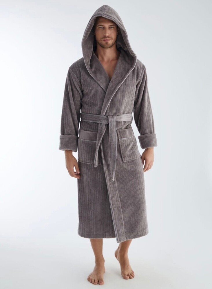 Чоловічий махровий халат з капюшоном довгий Nusa 1335